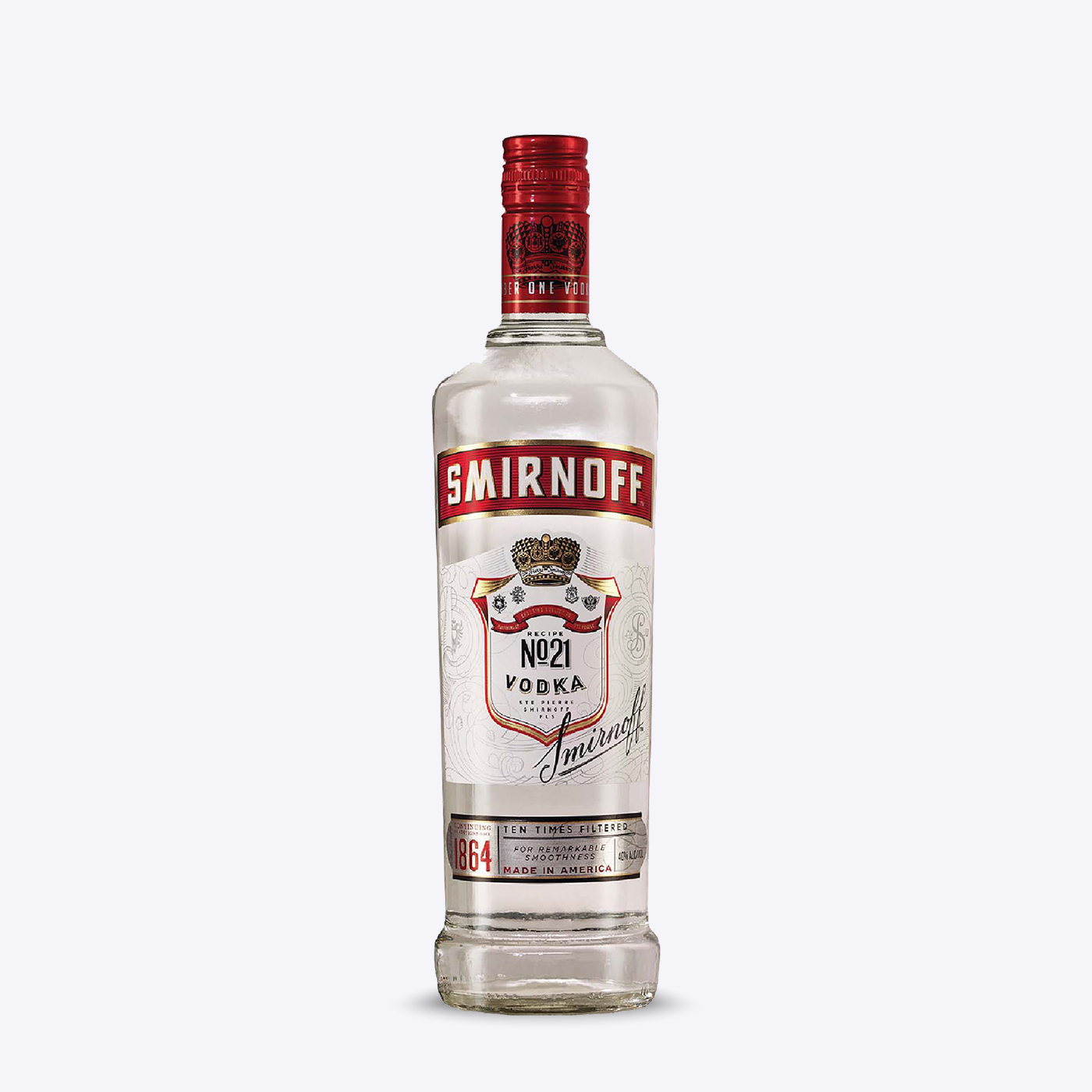 Smirnoff No. 21 (commonly known as Smirnoff Red) is a globally loved vodka, triple distilled and filtered ten times through charcoal for exceptional clarity and smoothness.